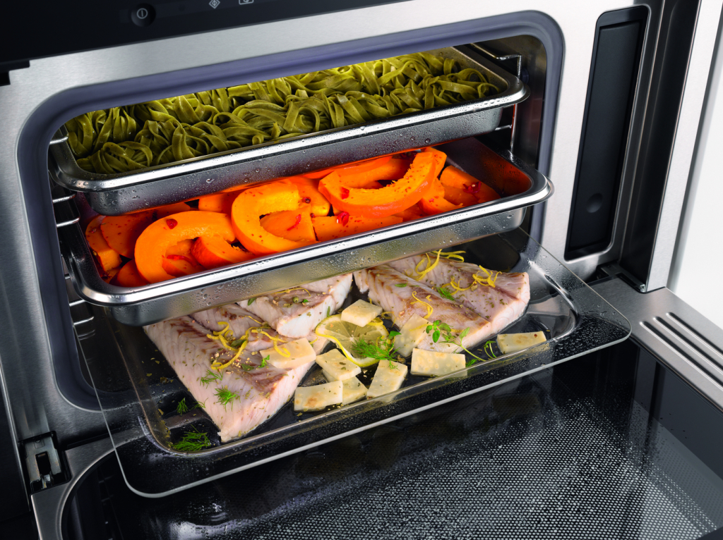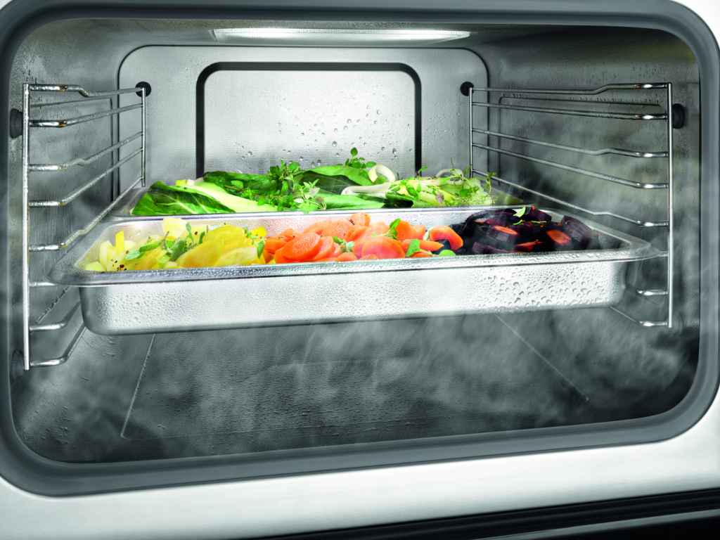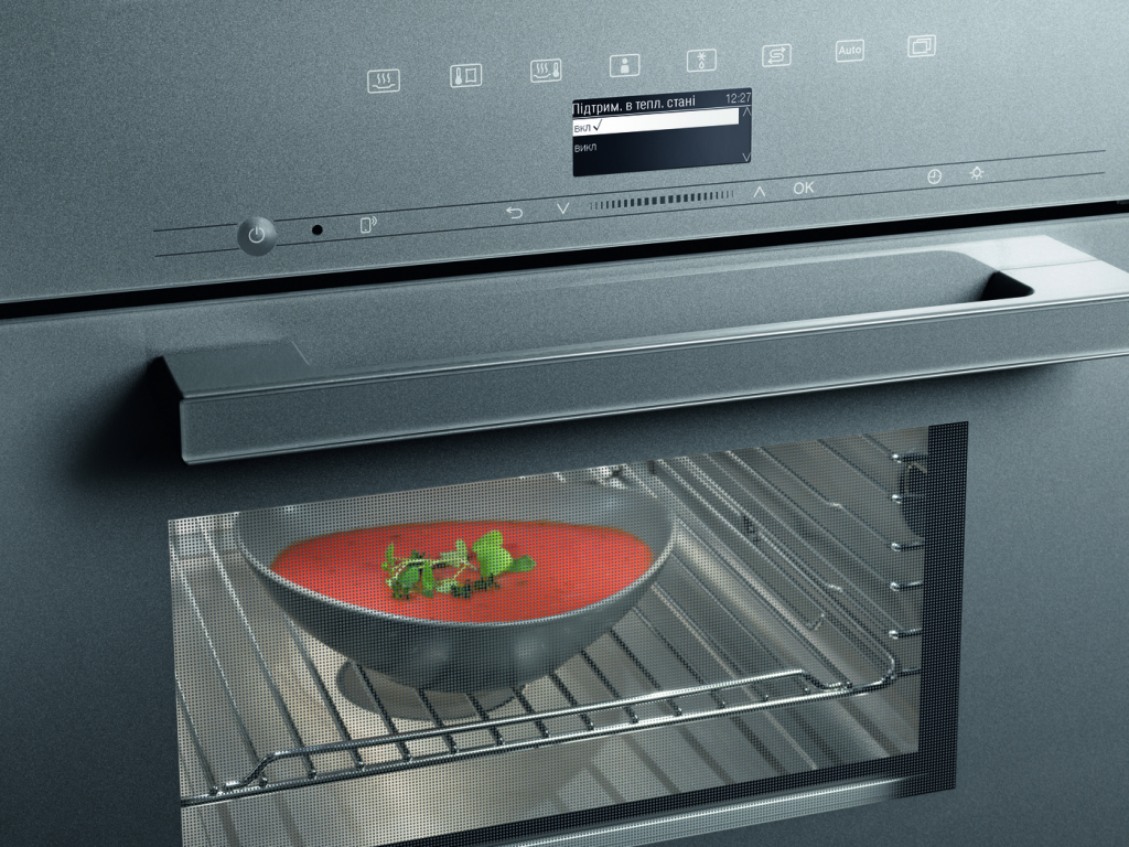 Інноваційна парова система: на відміну від інших систем, пара утворюється зовні робочої камери парових духовок Miele. У процесі приготування вхідна пара повністю заповнює робочу камеру духовки та витісняє кисень. Це сприяє швидкому нагріванню та оптимальному вимірюванню температури, зберігаючи природний колір страви. І, оскільки в робочій камері не може утворюватися вапняний наліт, усе очищується швидко та легко.