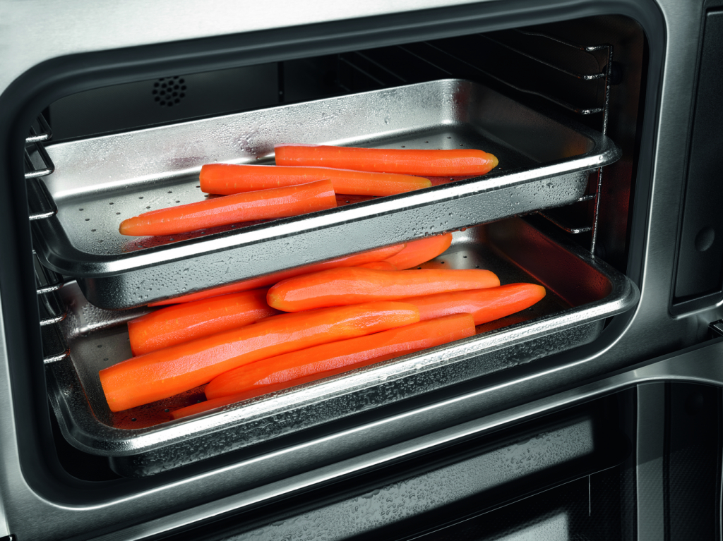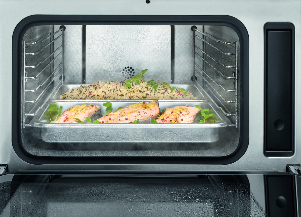 Достатній простір, швидке очищення: духовка з нержавіючої сталі має корисну ємність до 40 літрів і тому може вміщати великі контейнери для пароварки – наприклад, для приготування курки або риби цілком. Це означає, що ви можете готувати повноцінні меню для 8–10 осіб із більшою свободою та зручністю. Окрім достатнього простору, духовка повністю захищена від корозії та її дуже легко очищувати.