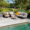 Алюмінієві рами і вулична мотузка складають основу вуличного кавового комплекту Cannes . Комплект, що не вимагає догляду, який можна залишати на вулиці цілий рік. Олефінові подушки бежевого кольору завершують все і забезпечують зручність сидіння, до якого Ви звикли від 4 Seasons Outdoor.