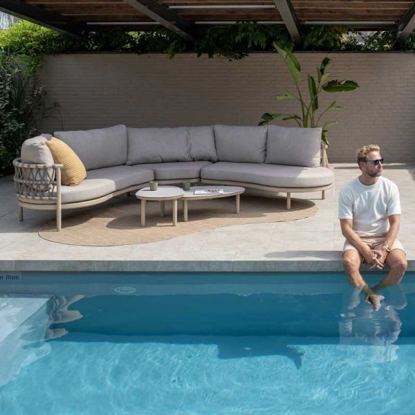 Алюмінієві рами і вулична мотузка в характерному кольорі складають основу комплекта Piacenza . Що не вимагає догляду комплект, який можна залишати на вулиці цілий рік. Олефінові подушки світлого кольору завершують все і забезпечують зручність сидіння, до якого Ви звикли від 4 Seasons Outdoor.